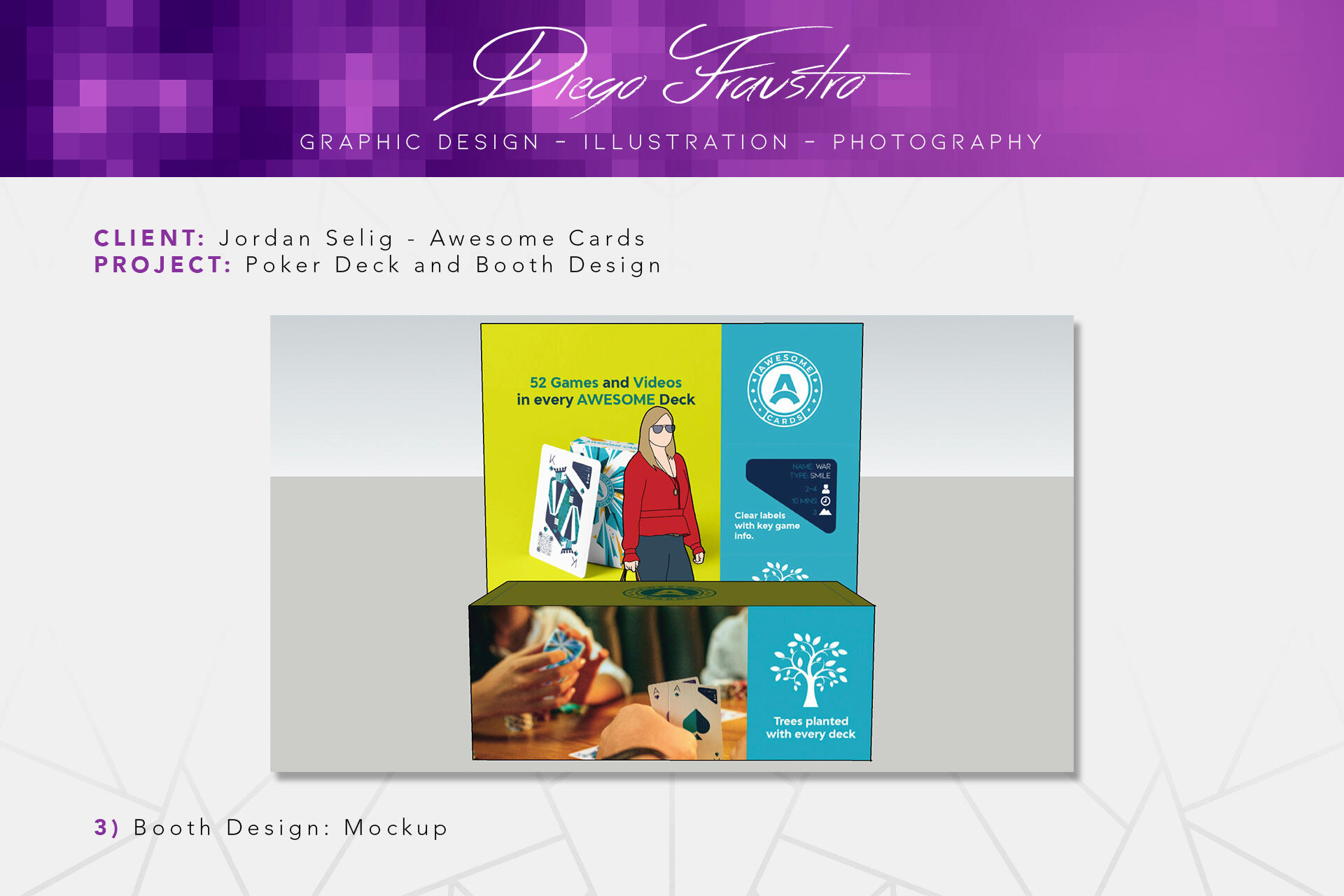 The experience of working on Awesome Cards remains a memorable one. Designing the promotional materials, from the decks to the booth, gave me the chance to stretch my creative energy and gain experience in creating engaging, impactful visuals for a brand. While the project is currently on hold, I’m proud of the work I contributed and look forward to seeing how it evolves when Jordan resumes his efforts in the future.
