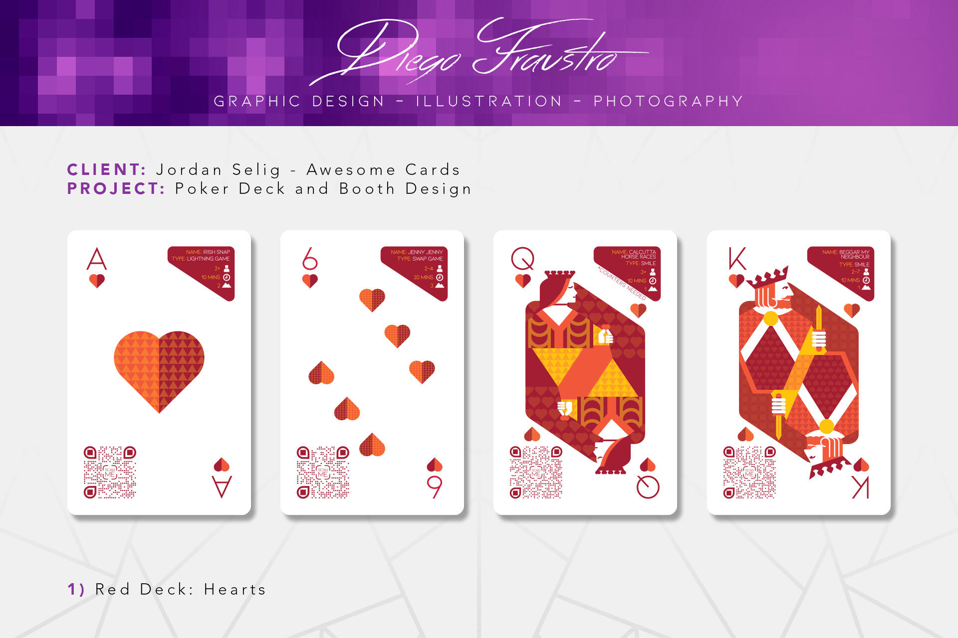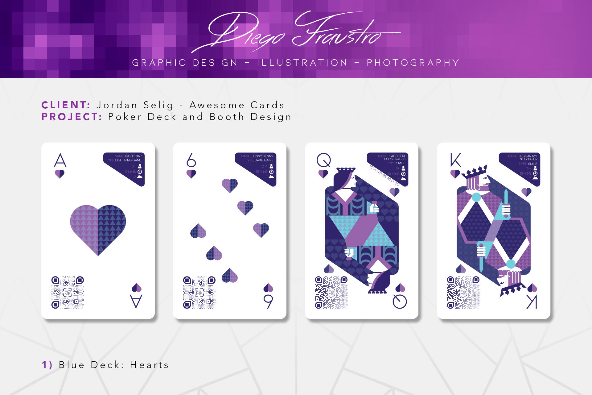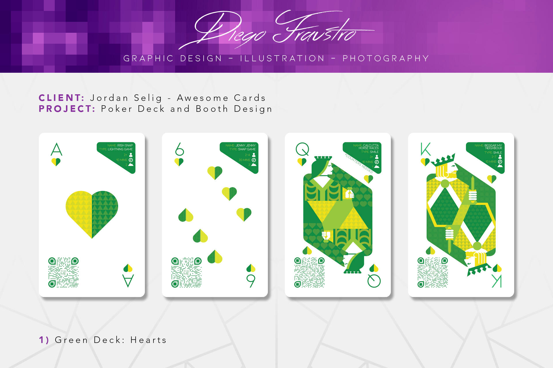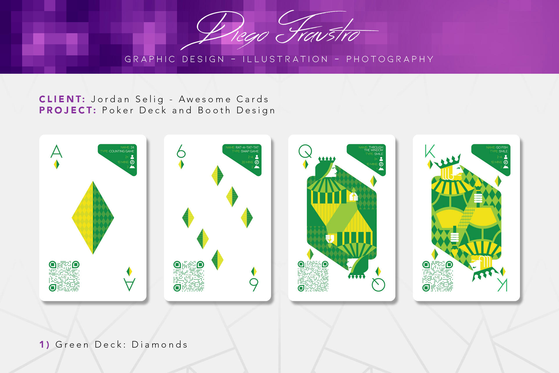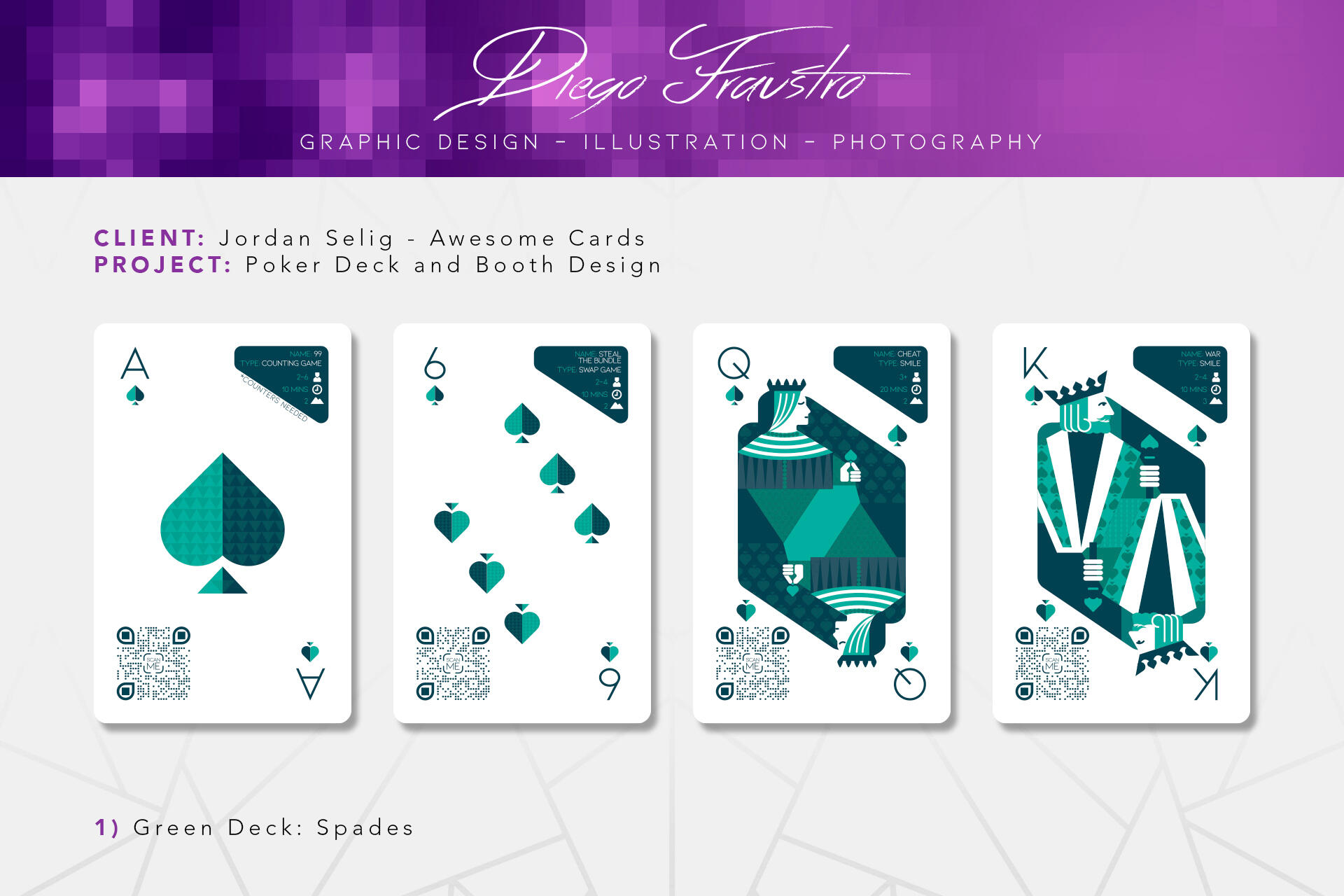 Awesome Cards is a project I absolutely had to include on this website, as it’s my first and only project so far to showcase my skills in the United Kingdom. For some background, I was hired by the CEO, Jordan Selig, to bring his vision to life. His idea was something I immediately felt passionate about: A deck of poker cards with a twist. The twist? Each card would suggest a different kind of game. The deck was created in three distinct color sets: Blue, Green, and Red.After a month of brainstorming, designing, refining, and formatting, the final designs were ready: